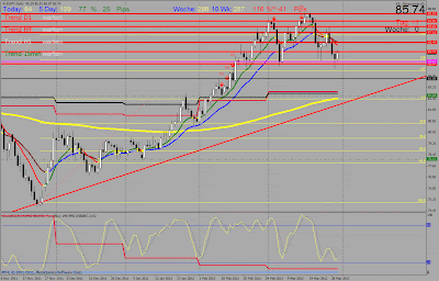 Sollte es doch durch die 85 durchrutschen gilt (wie bereits früher dargelegt) Zukäufe zu tätigen bei 83.50 und quasi (all-in) bei 82.xx